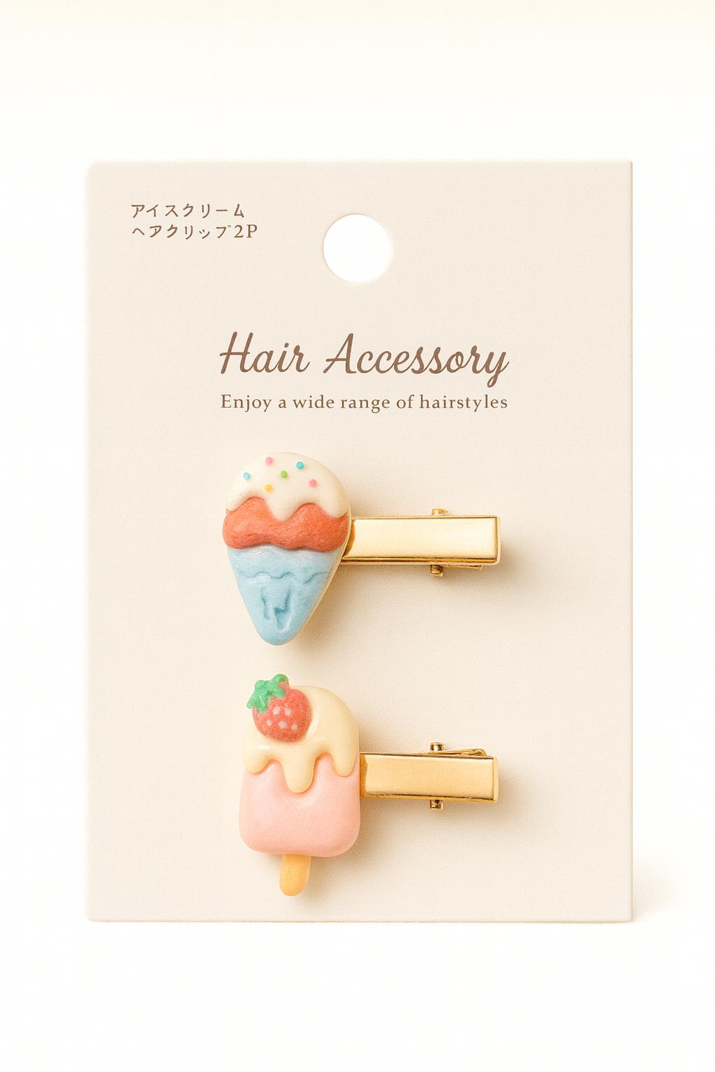 Kawai Hair Accessory Cute Ice Cream Clip - 2 set